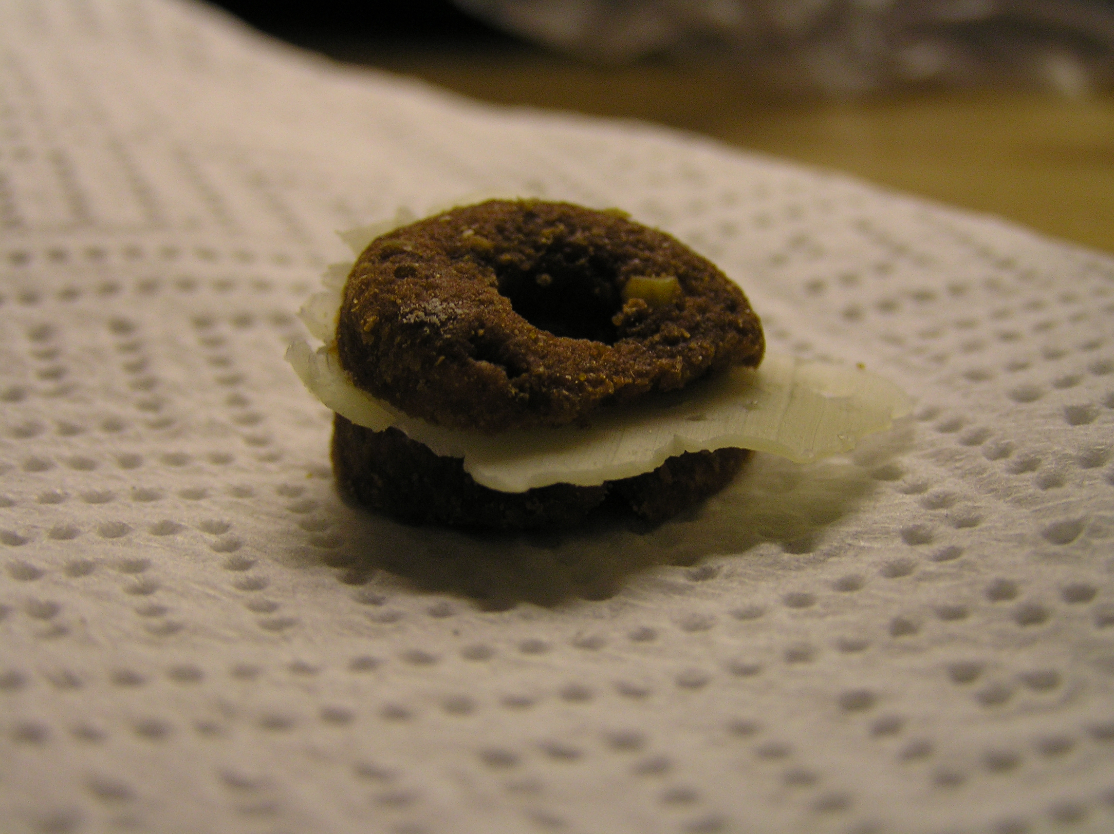 Frolic delad på mitten med en skiva ost mellan – mums!