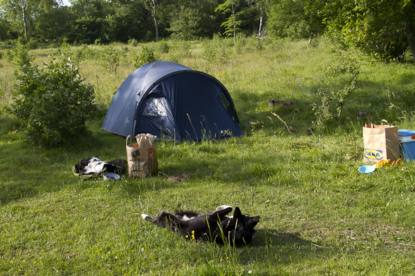 Men, vi börjar när vi satt upp vårt fina tält.