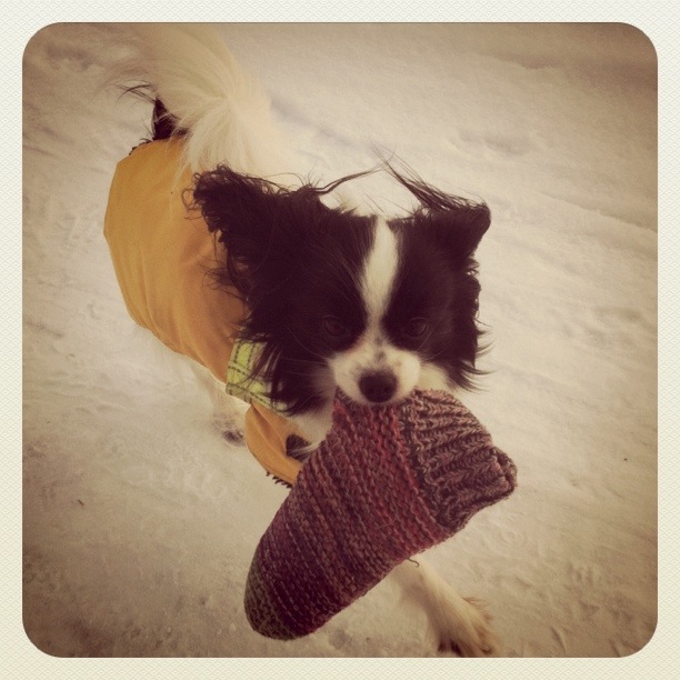Tigra ”snodde” vanten och sprang sedan omkring ock lekte ”vant-hund”