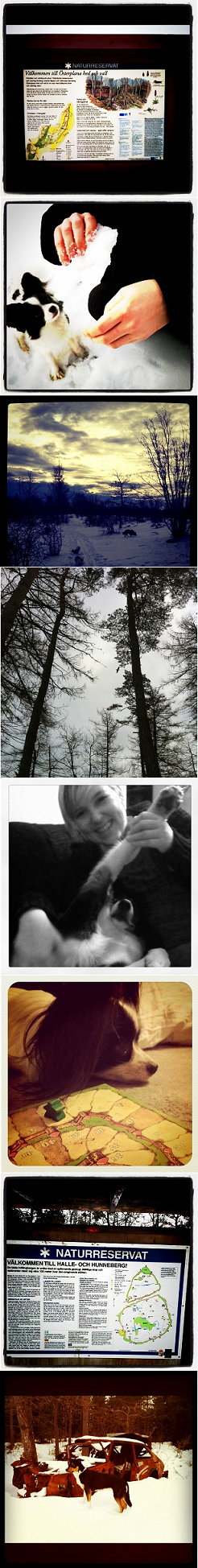 Halle- och Hunneberg. Ja… om vi säger så här; vi var lyckligt lottade att vi bytt däck på bilen. Våra splitter nya dubbdäck tuggade sig upp till toppen – fullkomligt galet att ge sig upp. Blankis även här. När vi väl kommit upp drog vi en suck av lättnad och tog en snabbrunda för att kolla läget. Snö & is gjorde att vi bestämde oss för att återkomma till våren för upptäcksfärd.