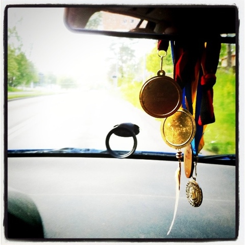 Bra ställe att ha medaljerna på. Min hänger fortfarande i badrummet där jag hängde av mig den när jag kom hem från Karlskrona…