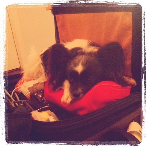 Packar det sista inför DK-resa med jobbet. Gissa vem som tycker att hon skall få följa med…