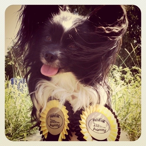 Piraya är verkligen i toppform! Gjorde två helt underbara lopp, med ruskigt fina kontaktfält i agilityklass, och vi lyckades med bedriften att vinna både hopp och agility.