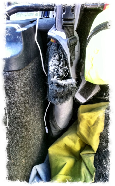 För att ha koll på hundarna i bagageutrymmet så har vi satt en termometer som visar hur många grader det är hos dem och hur många grader det är framme hos oss. Perfekt under soliga dagar! 🙂