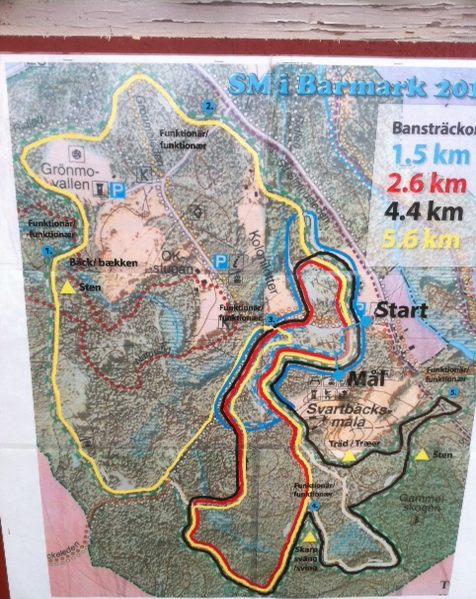 Det var alltså röda sträckan på 2,6 km som vi sprang lördag och söndag. Ett av mina mål för helgen var att springa 12 km/h, ett snitt på 5 min/km – eller helt enkelt sträckan på 13 min. Vi sprang på 12.38 första dagen och 12.45 andra dagen, det vill säga ett snitt på 4,8 min/km – yey!