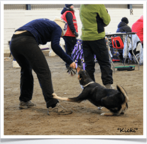 Som du och jag har pratat om (och pysslat med), så tror jag starkt på att försöka vänja hunden vid att matte blir konstig ibland. Jag vill att de (innan vi börjat tävla) känner igen den matte de har på tävling och inte tycker att det är så konstigt att jag ibland är lite hysterisk. Upplever att det är lättare att träna hunden att tåla min sinnesstämning än att träna mig själv att hantera min tävlingspersonlighet…