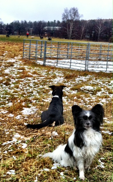 För övrigt vallar vi, och vallar och vallar! Det ger dessutom resultat – såklart! idag gick Charlie helt grymt bra för Simon. Ozz hade lite klister i öronen idag efter gårdagens fållarbete och förmodligen för att det var kallt i backen. 😉 Hon stannade superfint, men stående… så ja, jag var kanske inte helt bäst på att vara konsekvent med själva läggandet. Skärpning till nästa pass! Hur som, jobbade på att hålla ut bakom fåren och fösningar. Roligt roligt!