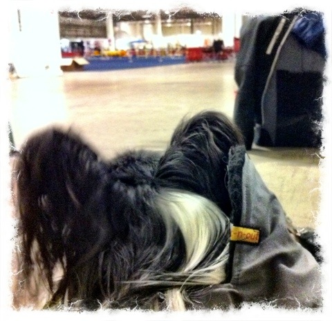 Nu sitter vi och inväntar banvandring. Smallhundarna är först ut. Än är det lugnt och tyst, men snart kommer hallen bli mer ljudlig…