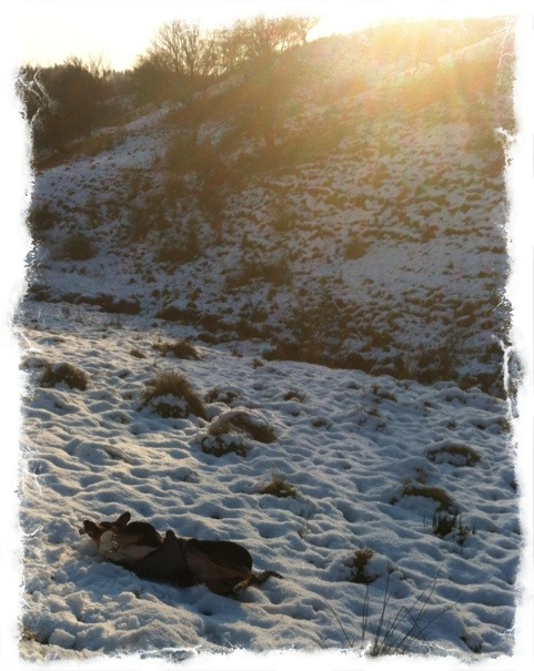 Betesmarker är vackrast på våren men med hund är de mest underbara att gå i på vintern. Härlig vinterdag med skinande sol. Dock var det skare, vilket de små uppskattade mindre… men samma tjej som bar över dem var för sig i den kalla Jämtlandsjokken trampade nu på med microsteg så att de fick sin egen lilla stig. Bortskämda? Ja 🙂