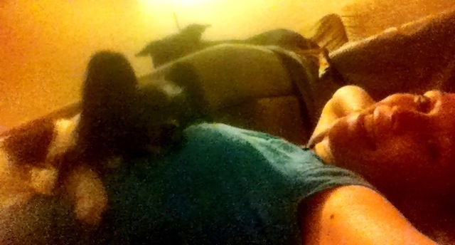 Ingen kan väl tro att detta är en bild på tema träning. Men det är precis vad det är. Piraya är min personliga tränare som ser till att magen är ordentligt spänd (och varm) i varje magövning. Att det guppar upp och ner eller vrider sig under henne berör henne inte en sekund.