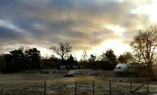 Det är lika bra att smida medan järnet är varmt. Ställde klockan på 6 och åkte raka vägen till hagen. Det första vi såg när vi landade var Mickel-räv som struttade runt i hagen. Fin i både päls och uppsyn.