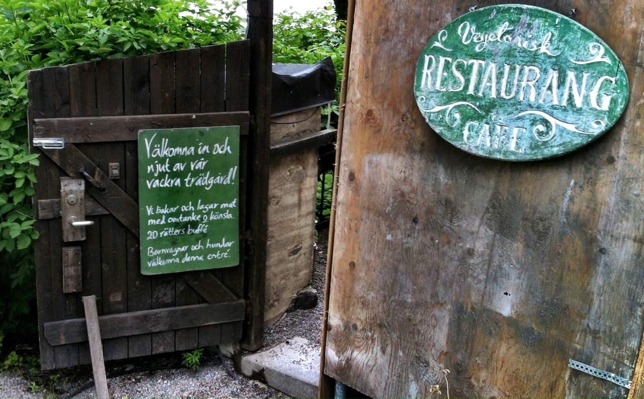 För att förgylla dagen ytterligare mötte vi upp E&J på ”Stjärnmellanmiddag” (vilket underbart namn för födointag mellan lunch och middag) vid 16-tiden på Hermans – vegetarisk midsommarbuffé. Hur gott som helst. Kan varmt rekommendera en tur dit. Extra bonus, förutsatt att man vill sitta ute, är att hunden får följa med. Check!