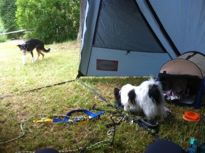 Om det är något vi har just nu så är det livskvalité. Förra året köpte vi ett megastort tält när vi åkte till Dania Cup, och sedan den agilityveckan har vi inte använt det. Men denna vecka står det uppe, och jäklar vad det är grymt. Som en egen liten husbil nästa. Två rum och kök – lyx.