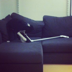 Nu har vi i all fall rätt utrustning för att hålla kontoret skinande – och det skall vi försöka med. Med eller utan valpens hjälp…