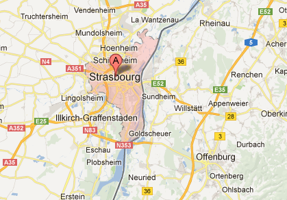 Har i ett par veckor pratat om att jag skall åka till Tyskland… Strasbourg. Visste ni att det inte låg i Tyskland? Inte jag. Döm om min förvåning när mina kollegor pratar om Frankrike och jag Tyskland. Jaja, kollar jag på kartan är det faktiskt inte helt ologiskt att tro att det var Tyskland vi skulle till…