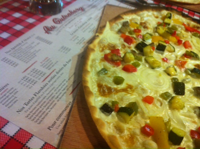 Fick även äta Strasbourgs specialité, en tunn pizza med namn Tartes Flambées, vegetarisk sådan. Smakade mest ingenting, tänk er ett tunnbröd med ost på – utan kryddor. Saknade crêpes och nutella… hade hellre satsat på det.