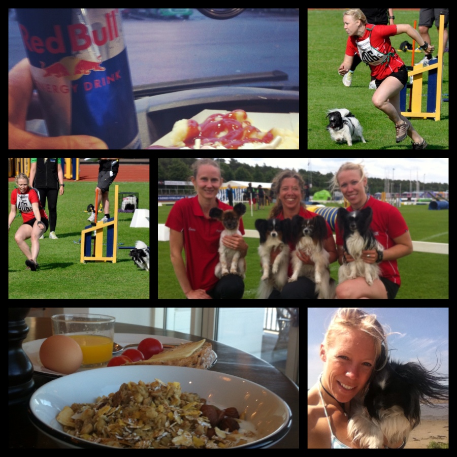 Vi kom fram vid 11-tiden – äntligen!!! Veterinärbesiktningen klarade vi av i ett nafs och drog raka vägen till ICA och fixade lunch för att sedan åka vidare till Falkenberg Strandbad, bokade ett rum och slocknade återigen, fast denna gång hann vi knappt lägga huvudet på kudden… Tre timmar senare ringde klockan, och gissa vad!? Två pigga brudar med (betydligt) piggare hundar hoppade ur sägen redo för Lag-SM!