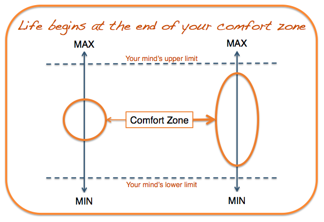 Det som alltför ofta sätter krokben för oss själva är våra egna mentala spärrar. Vi har både en övre och en nedre mental gräns för vad vi tror om vår egen kapacitet. Att bara fokusera på att höja sin mentala gräns vidgar inte trygghetszonen. Vi behöver även utmana oss själva att göra det vi inte vågar, orkar eller vill för att det vore jobbigt om vi inte lyckades. Då, när vi faktiskt vågar oss på att faktiskt förlora, då kan vi också börja våga vinna.
