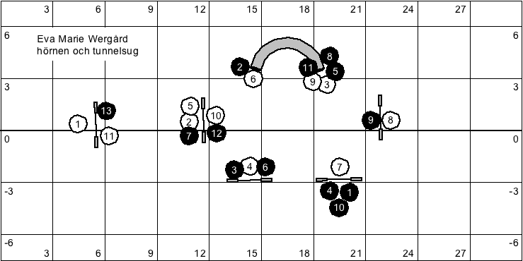 Nedan ser ni en banskiss av en del av kvällens agilityövning i skuggan. Hörnen och tunnelsug stod på listan. Håll till godo.