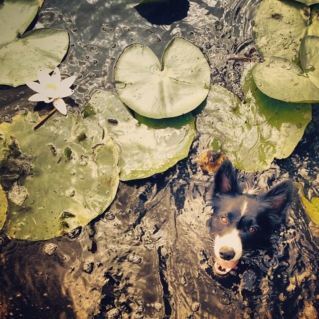 För att fira fladdermusen tog vi en sväng till Kottlasjön, för Bat älskar att simma. Älskar att sänka ner kroppen i allt blött, sådär så att bara huvudet sticker upp. Simmandes, småbjäffande och knorrandes av njutning. Bara för att det är såååå skönt att simma. Runt runt runt.